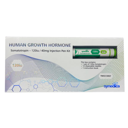 Synedica Somatotropin is a premium recombinant HGH. 200iu kit with 20 vials + bacteriostatic water. Supports muscle growth, recovery & fat metabolism.